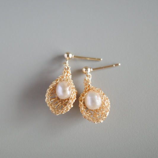 Lace Pearl – ワイヤークロッシェ耳飾り Gold color