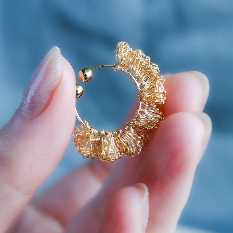 ふわりフリル – ワイヤークロッシェ イヤーカフ(一つ) ゴールド