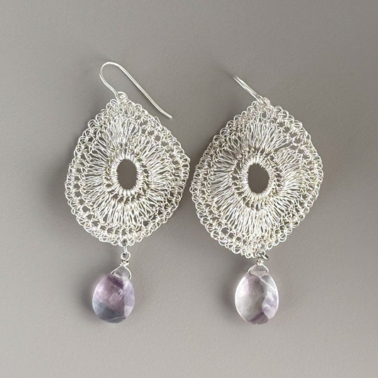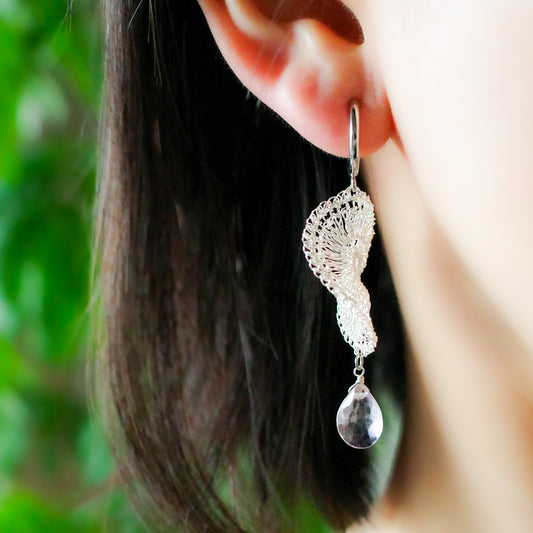 Softly Frills and Pearl – Wire Crochet 2-Way Earrings silver