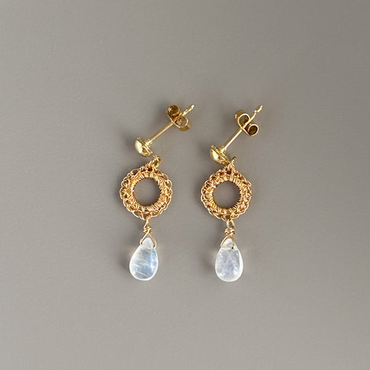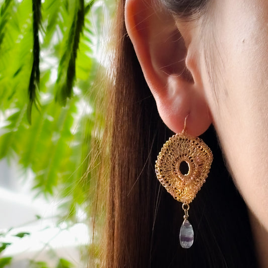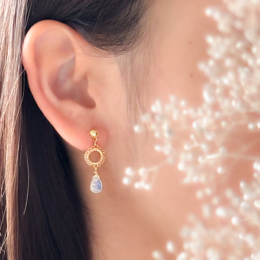 Softly Frills and Pearl – Wire Crochet 2-Way Earrings gold