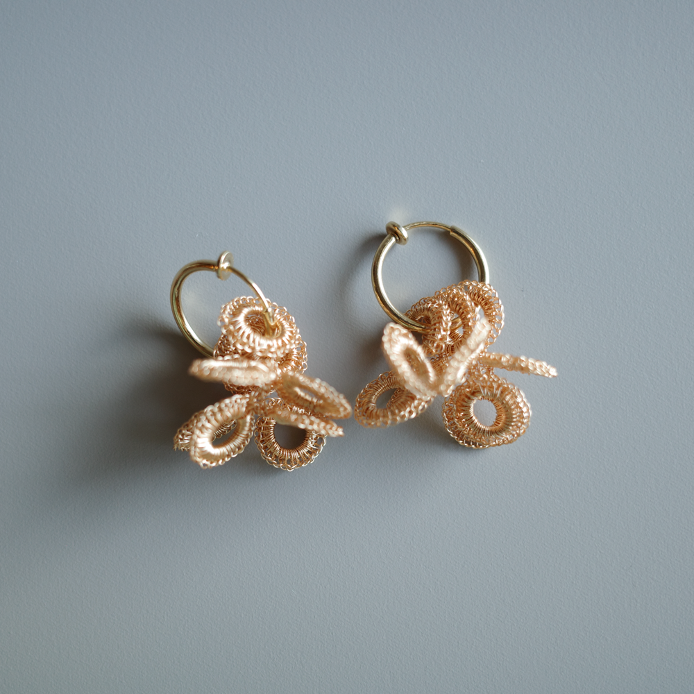 [ About Wire Crochet ] A delicate technique in which metal wire is hand-crocheted stitch by stitch. Because each piece is fully handmade, it’s lightweight and comfortable even for long hours. Perfect for everyday wear and special occasions.