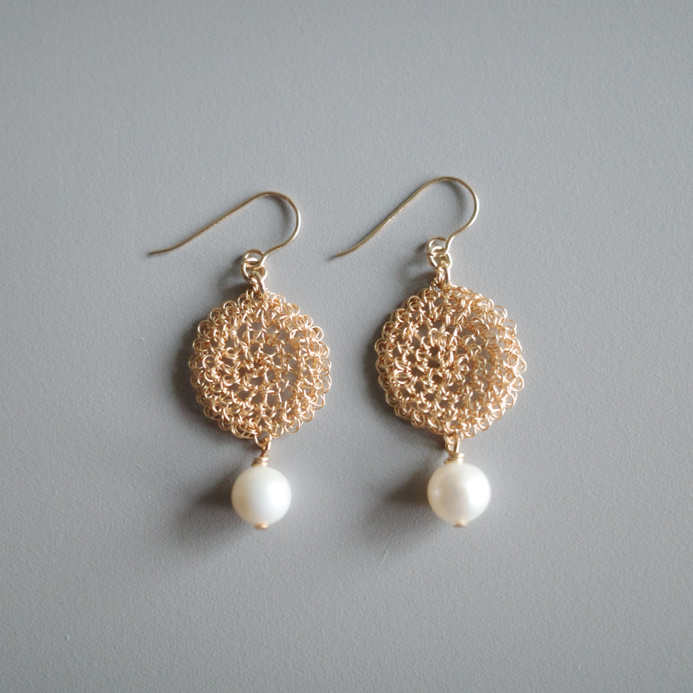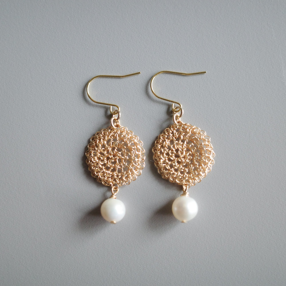Lace Pearl – ワイヤークロッシェ耳飾り Gold color