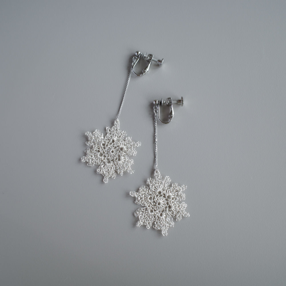雪の華 ワイヤークロッシェ 耳飾り[シルバー]