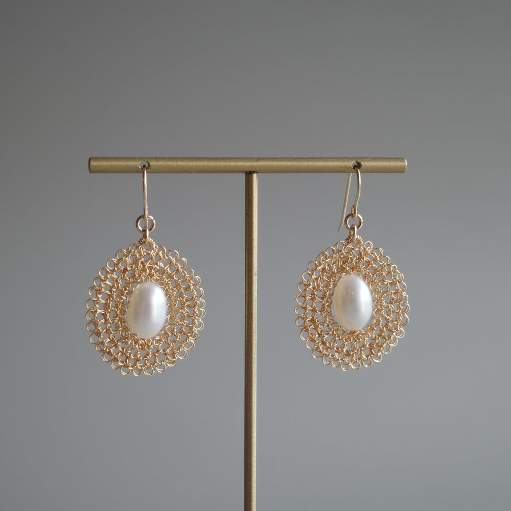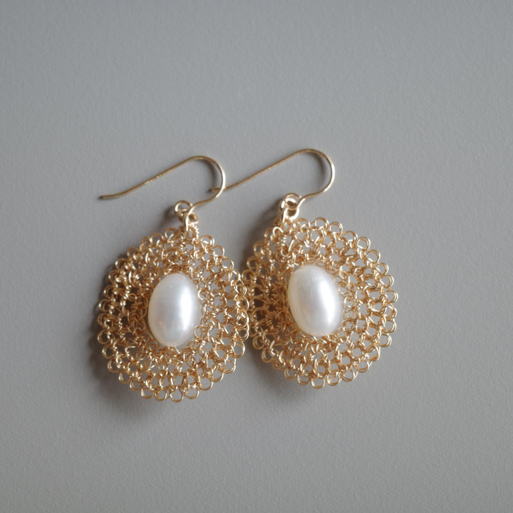 上質な淡水パールと丁寧に編まれたワイヤーが美しく調和し、特別な日にもふさわしい華やぎを演出します。
