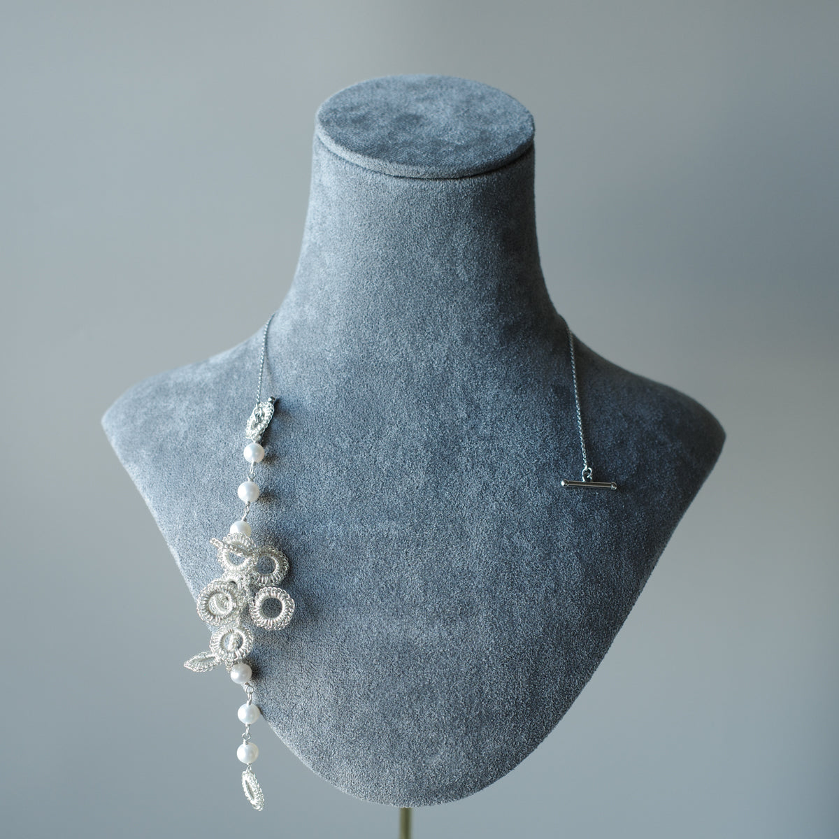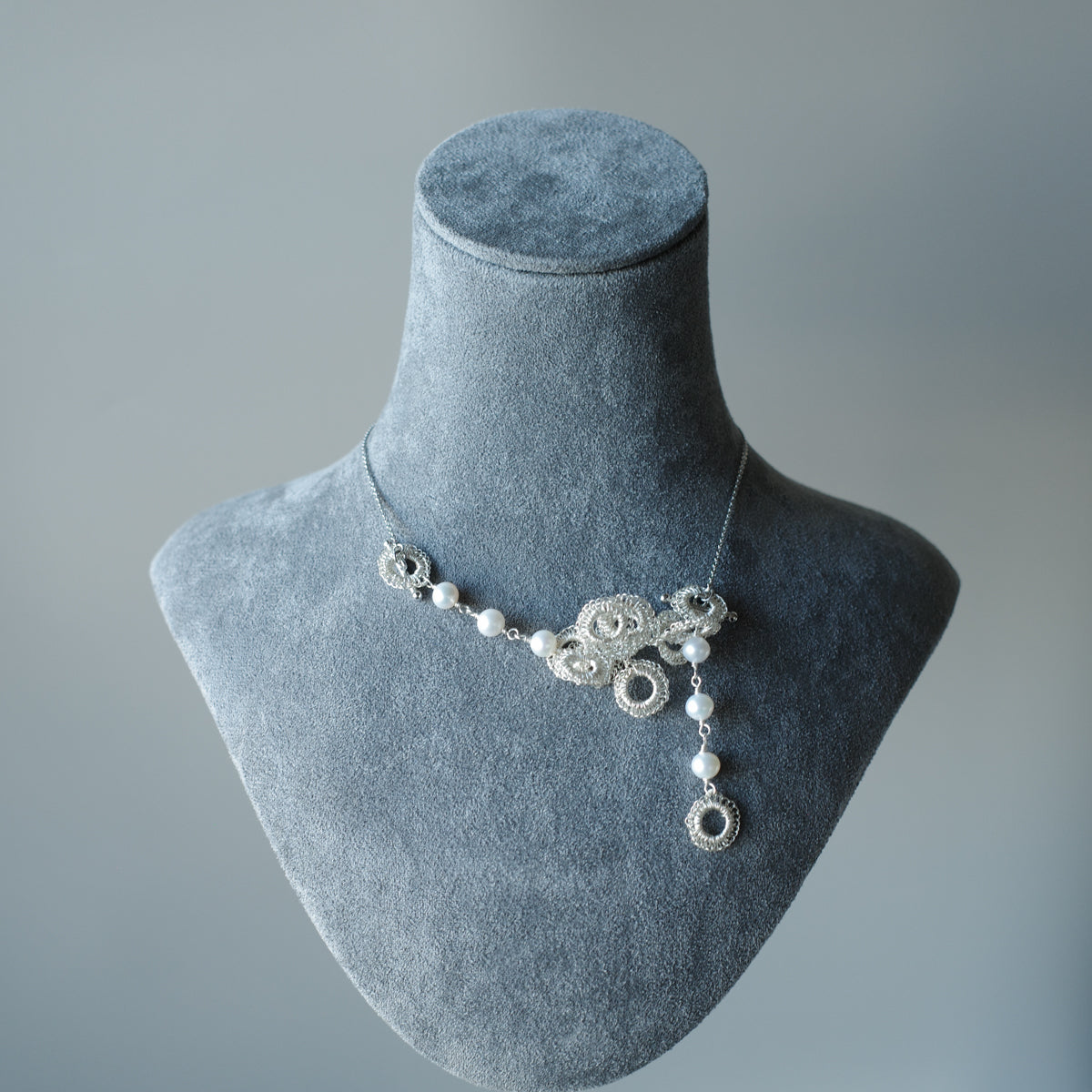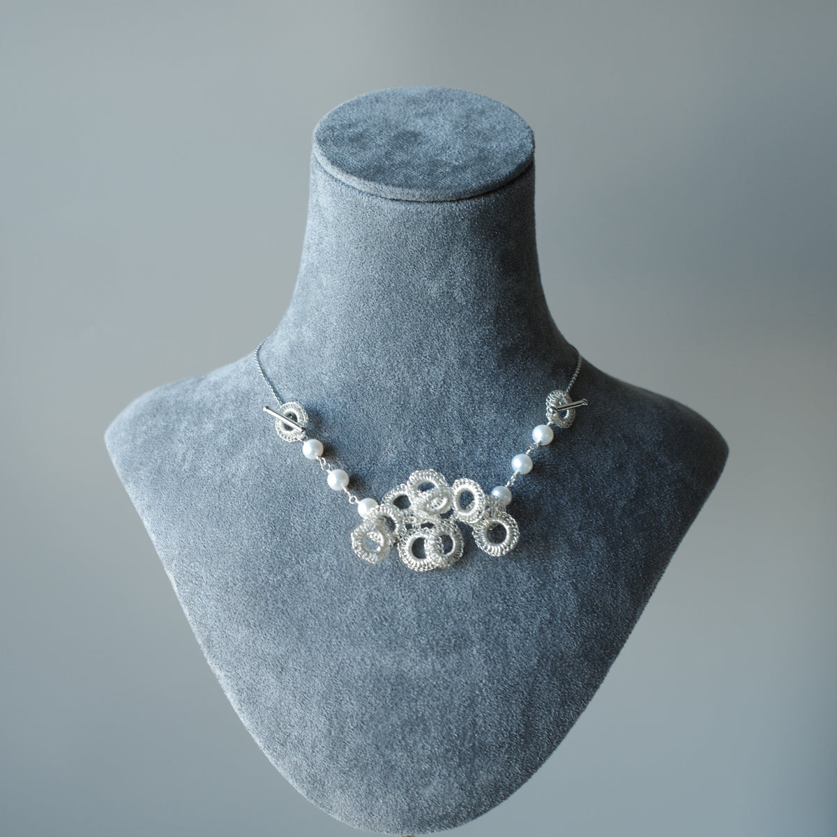 Full Bloom – ワイヤークロッシェとパールのネックレス S Silver Color
