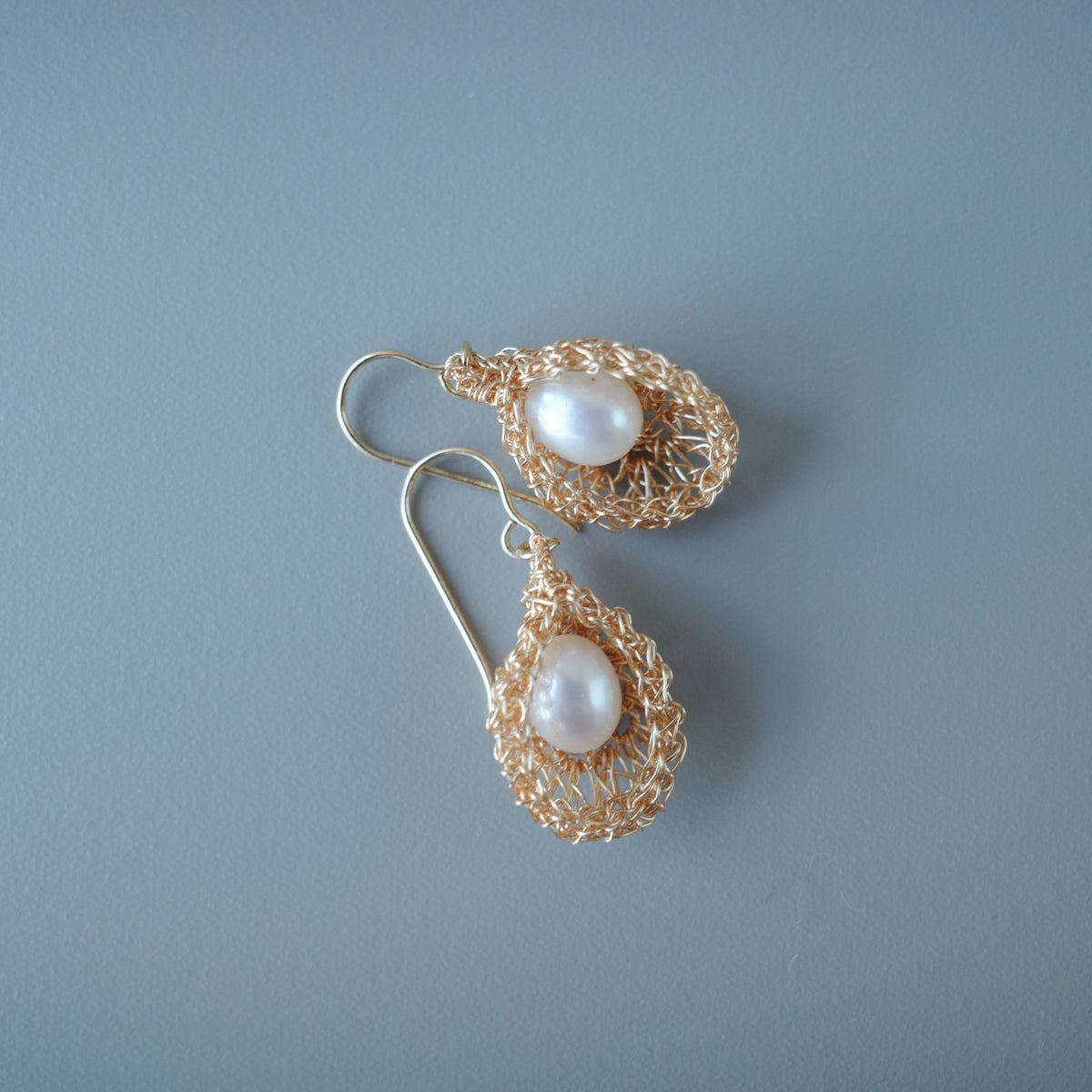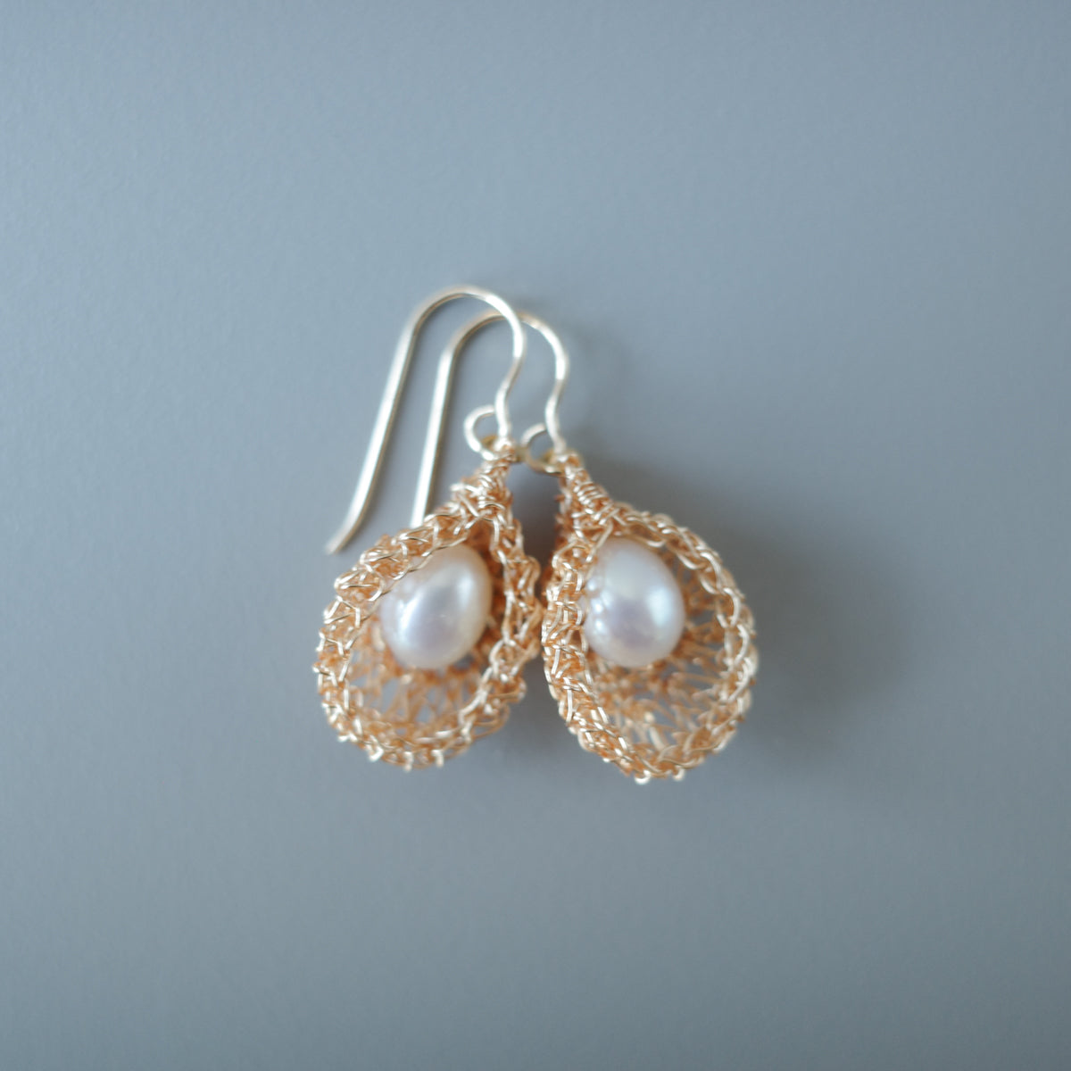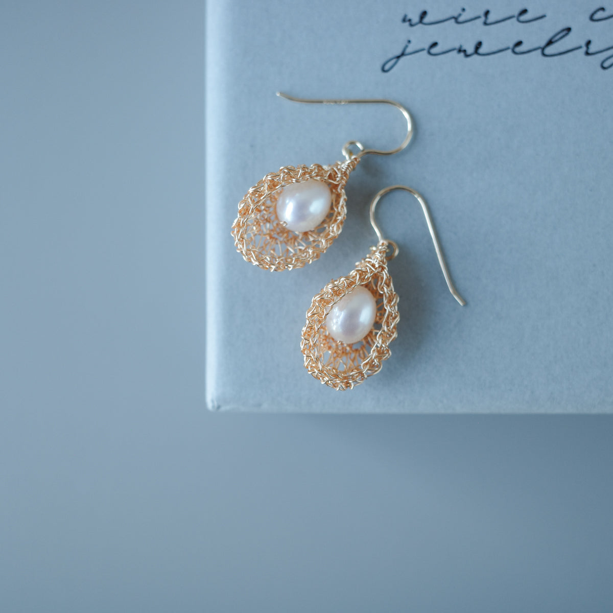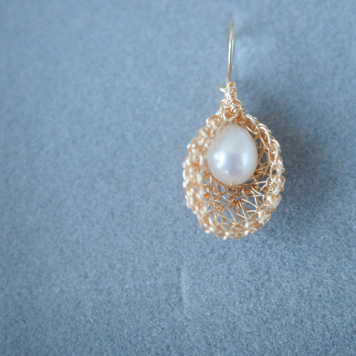 繊細に編み上げたワイヤーが、パールの柔らかな輝きを引き立て、上品さとぬくもりを演出します。