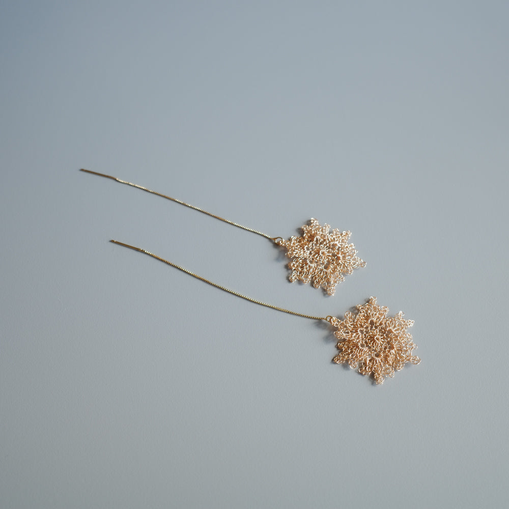 雪の華 ワイヤークロッシェ スライドチェーンピアス[ゴールド]