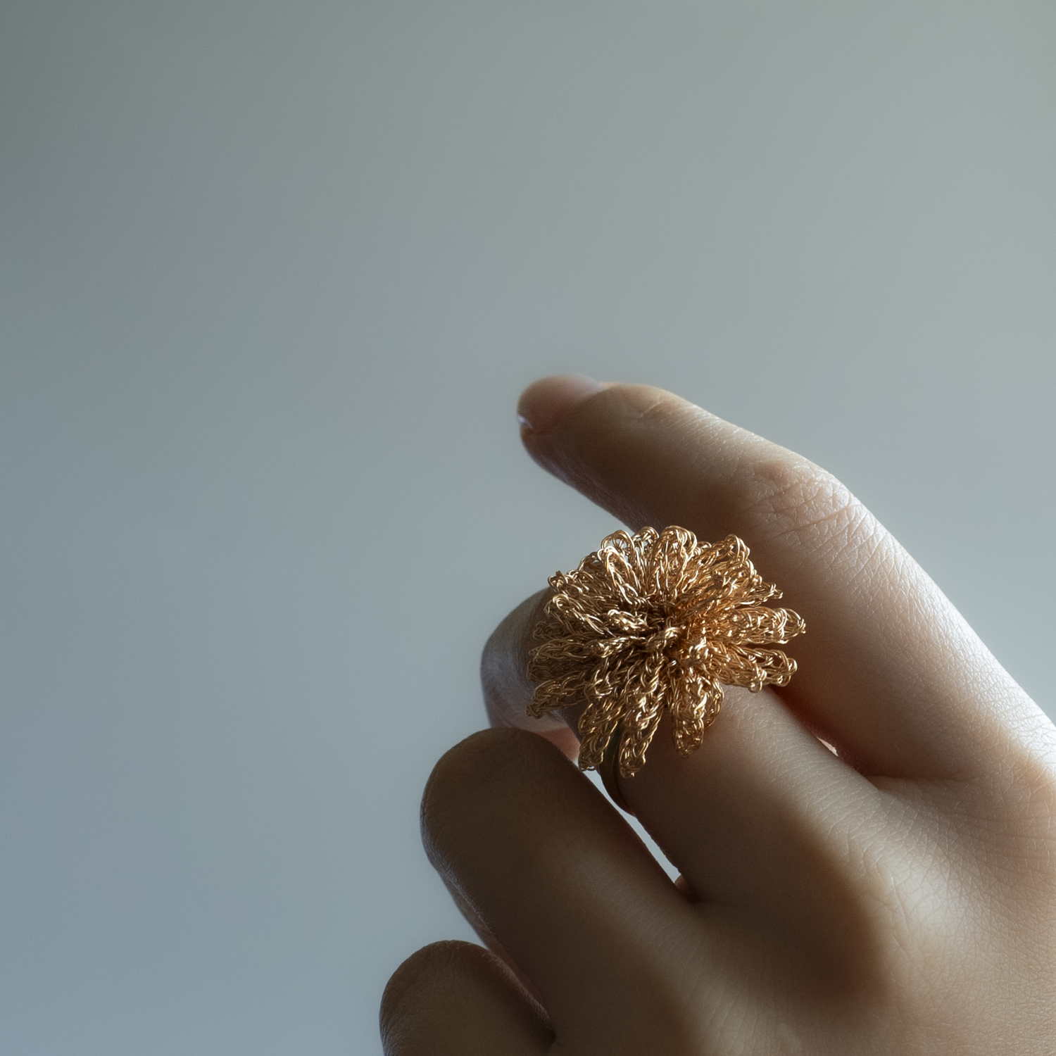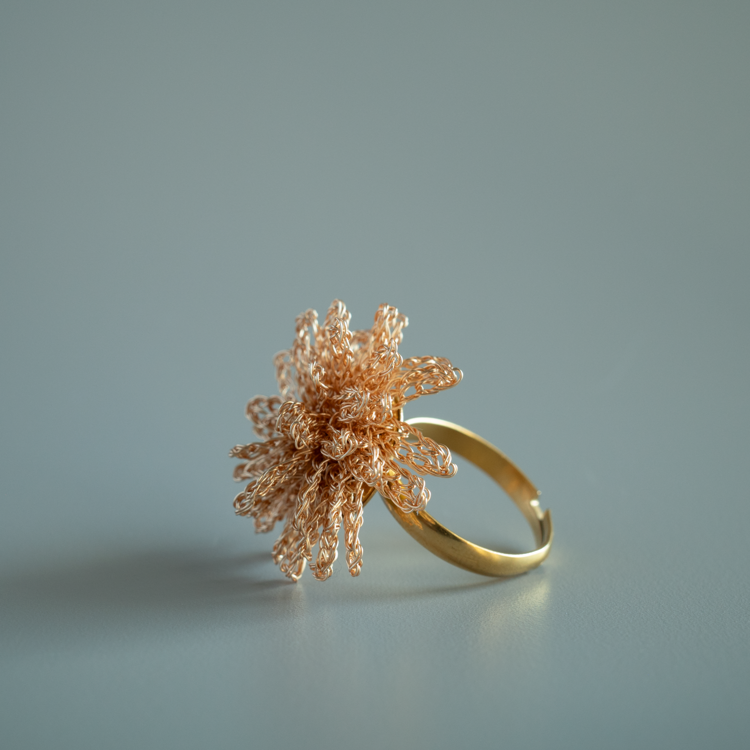 細緻的金屬線手工編織,花瓣柔美,彷彿把春風輕舞的瞬間留在手上。
