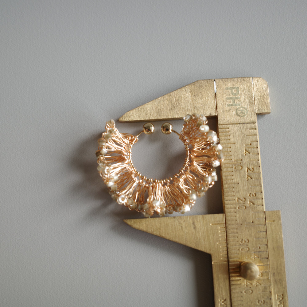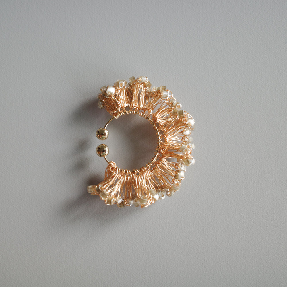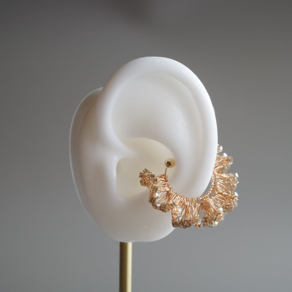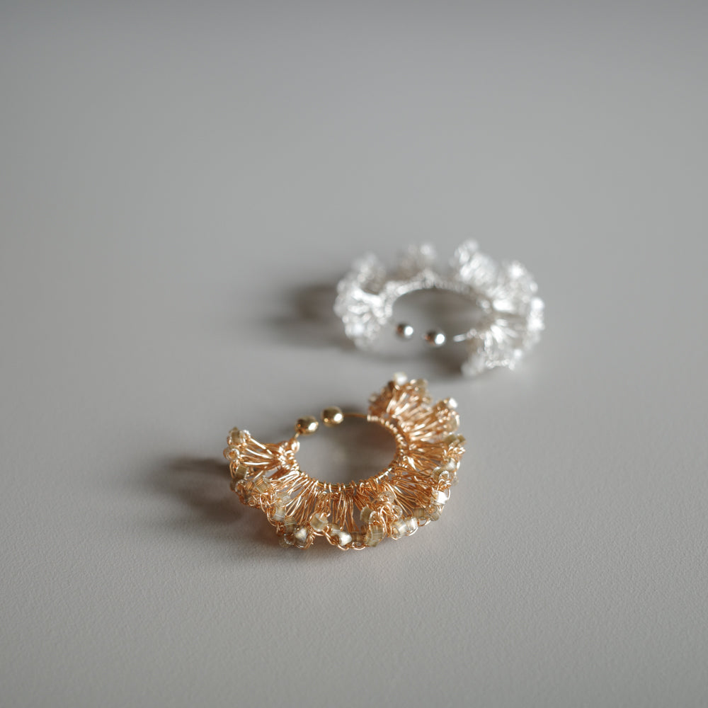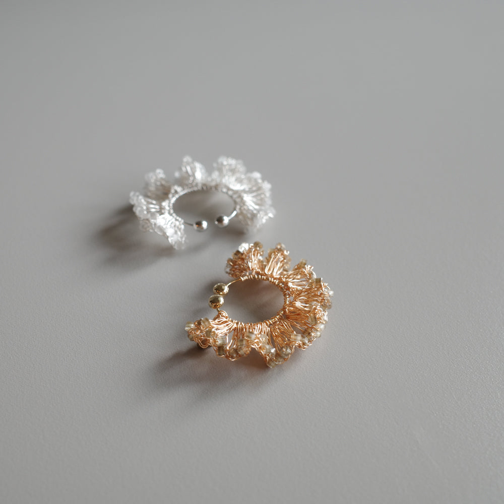Frill Glow – 金屬線蕾絲耳夾[日本玻璃珠]gold