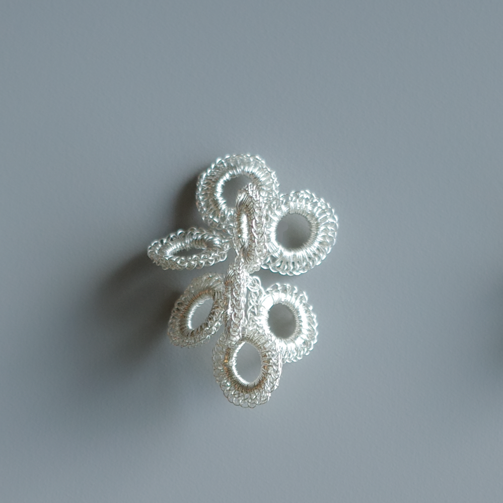 每一件作品皆以細緻的金屬線,透過鉤針一目一目編織而成的線編工藝製作。